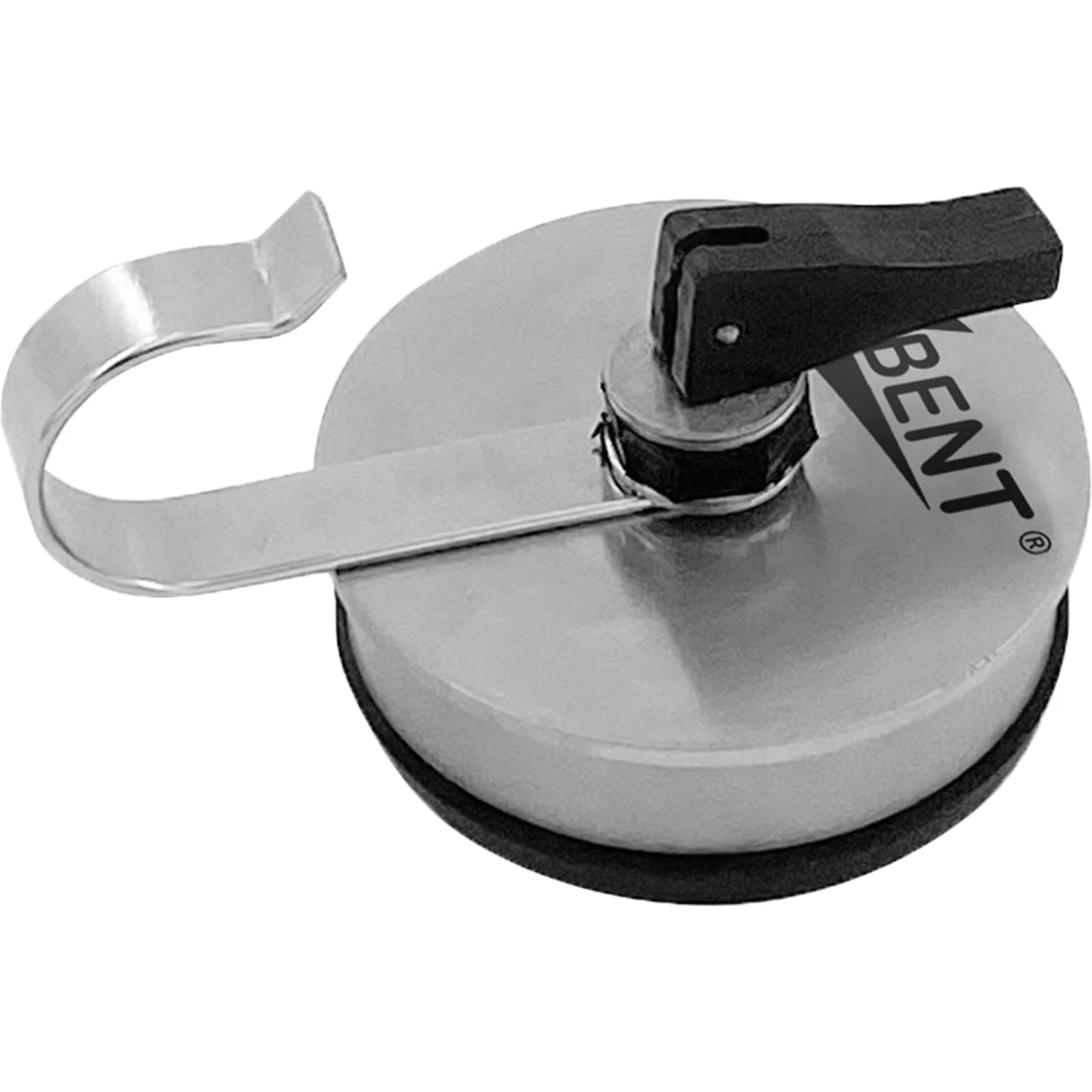 Der Klappsauger von BENT ist eine Saugnapf Befestigung aus Edelstahl und dient zur Befestigung des Universal Fahrzeugadapters inkl. Spannstab am Fahrzeug. Die Saugplatte aus Naturgummi passt sich optimal an glatte Obeflächen an und bietet eine maximale Tragkraft von 10 kg. Die gebogene Spange ermöglicht das Einhängen des Spannstabes oder anderer Gegenstände mit einem maximalen Durchmesser von 22 mm. Ideal als Ergänzung zum BENT Universal Fahrzeugadapter und BENT Spannstab, um das BENT System am Fahrzeug zu befestigen.