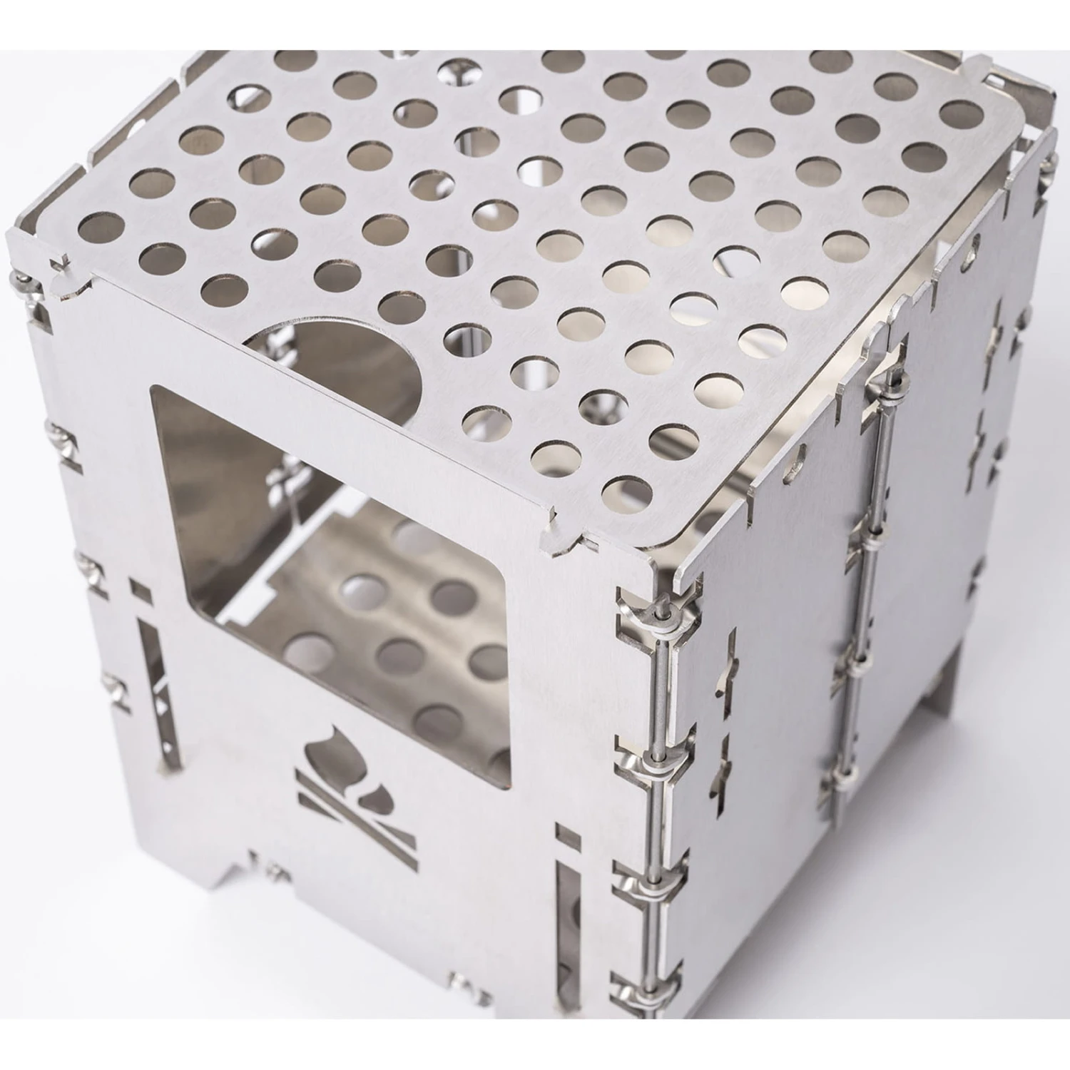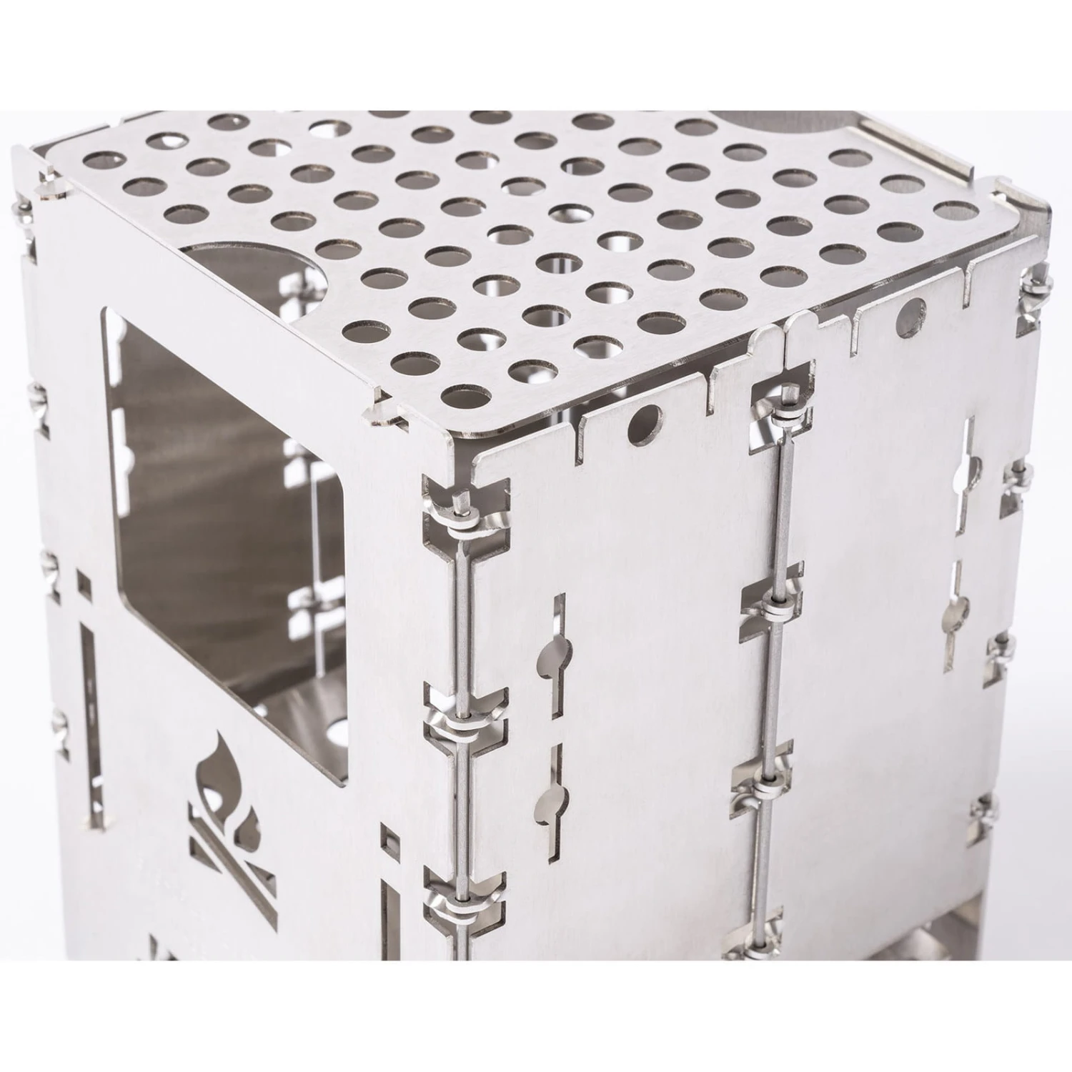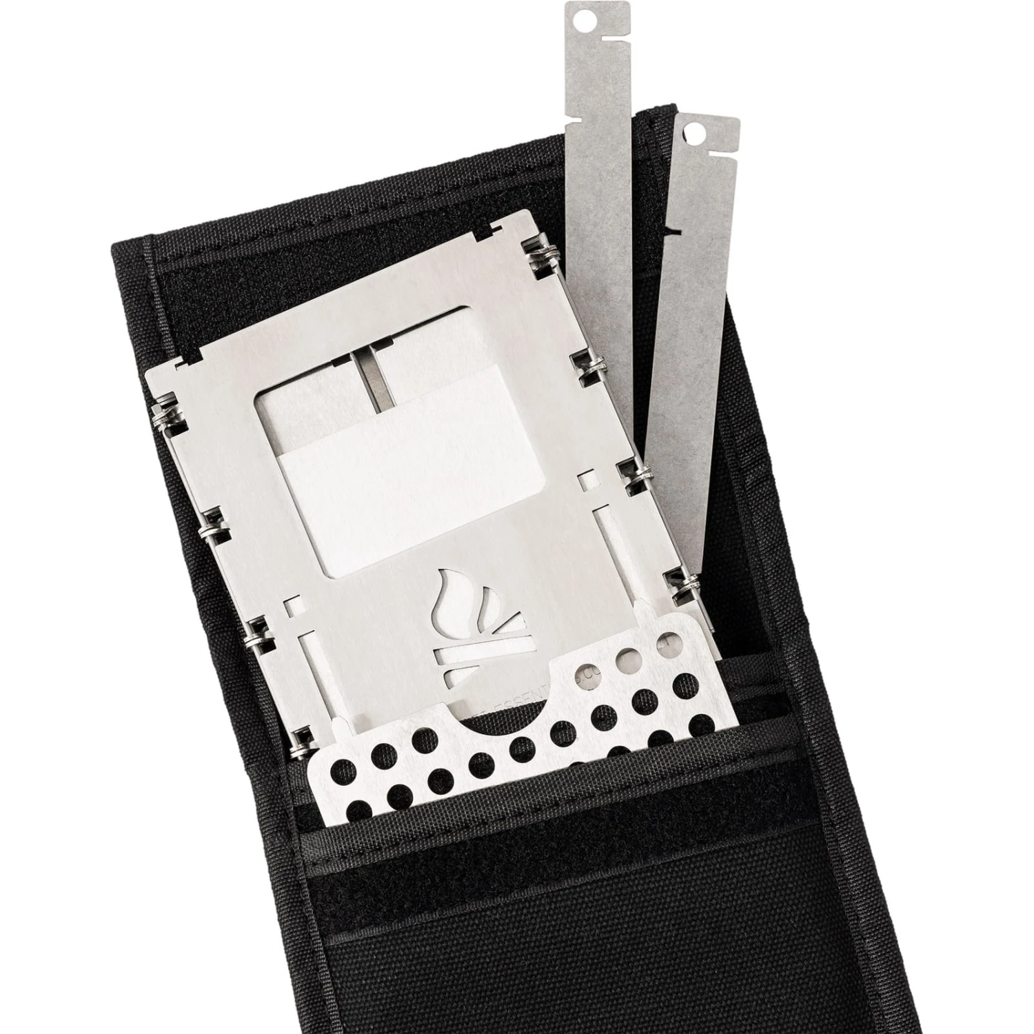 Die Bushbox LF (large, foldable) im Set ist nicht nur der missing link zwischen Bushbox und Bushbox XL und verbindet das Beste beider Welten: sehr klein, trotzdem faltbar und mit so gutem Zug wie ein Großer. Selbstverständlich ist die Bushbox LF mit denselben speziellen und einzigartigen Scharnieren hergestellt wie die Bushbox XL: Diese extrem aufwendige Scharniertechnik stellt sicher, dass die Scharniere nie verkleben können. Geliefert wird die Bushbox LF zusammen mit einem vielseitig verwendbaren Topfauflagen-Set. Wie alle Kocher von Bushcraft Essentials wird die Bushbox LF komplett in Deutschland aus rostfreiem Edelstahl 1.4301 hergestellt und mehrstoff-fähig (Betrieb mit Holz, Esbit, Trangia etc. möglich). Im Set enthalten ist das Universalrost LF und eine strapazierfähige Tasche.