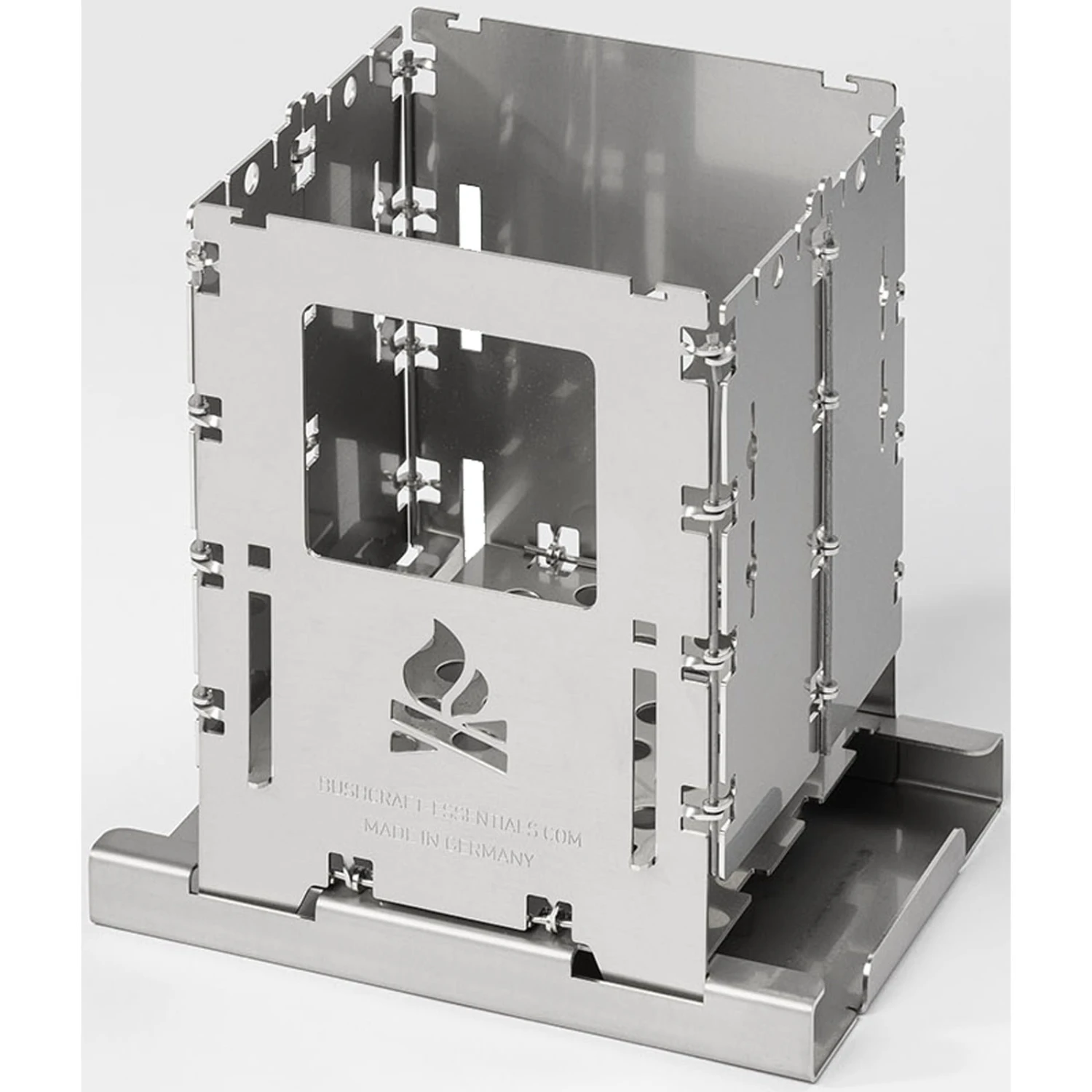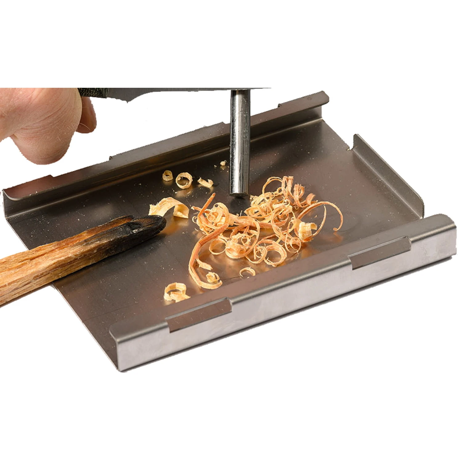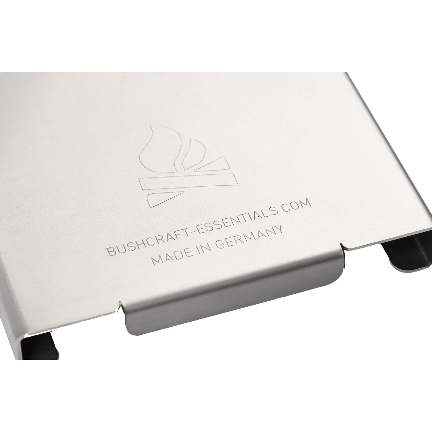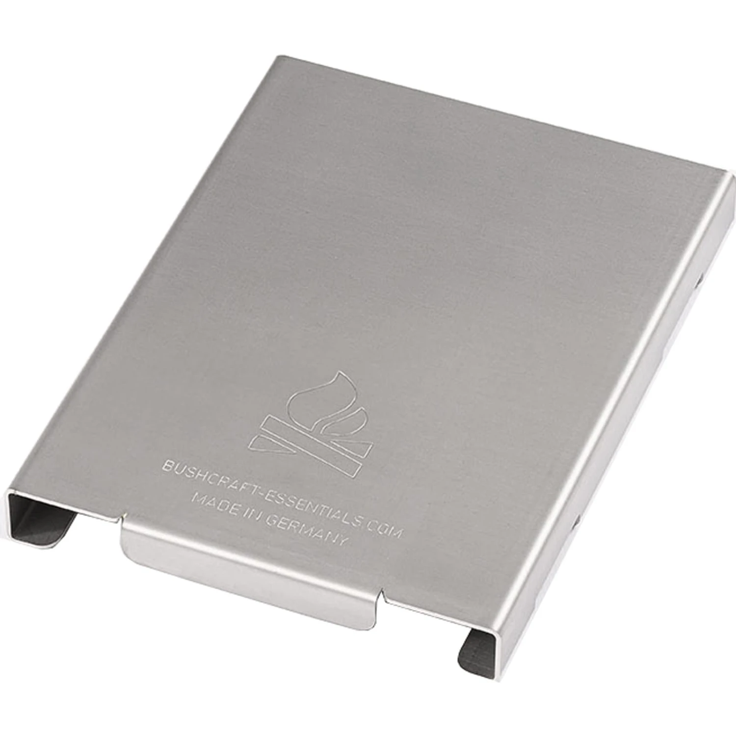 Ein ausgeklügeltes Zubehör für alle Outdoor-Fans ist der superleichte Multifunktions-Einschub aus Titanium. Die Bushbox LF Titanium von bushcraft essentials lässt sich kinderleicht in das Gehäuse einschieben und ist so sicher, sauber und platzsparend im Rucksack verstaut. Darüber hinaus bietet der Einschub eine Vielzahl weiterer Einsatzmöglichkeiten. Als feuerfeste, trockene Unterlage verwendet, lassen sich darauf Feathersticks schnitzen, Rinde schaben und vieles mehr, um ein Feuer zu entfachen. Das entzündete Material kann direkt vom Einschub in die aufgestellte Bushbox gegeben werden. Er dient als stabile Unterlage für die Bushbox LF Titanium, die sich mit nur einem Handgriff in die dafür vorgesehenen Aussparungen des Einschubs einrasten lässt. Praktisch auch auf unebenem Gelände wie Sand oder Schnee. Gleichzeitig schützt der Einschub den Untergrund vor heißer Glut und fängt etwaige Feuerrückstände auf. In der Outdoor-Küche lässt sich der Multifunktions-Einschub als Unterlage für die Zubereitung von Mahlzeiten oder als Deckel fürs Kochgeschirr verwenden. Der Multifunktions-Einschub Bushbox LF (Titanium) passt mit eingeschobener Bushbox LF Titanium auch in die Ledertasche Bushbox LF.