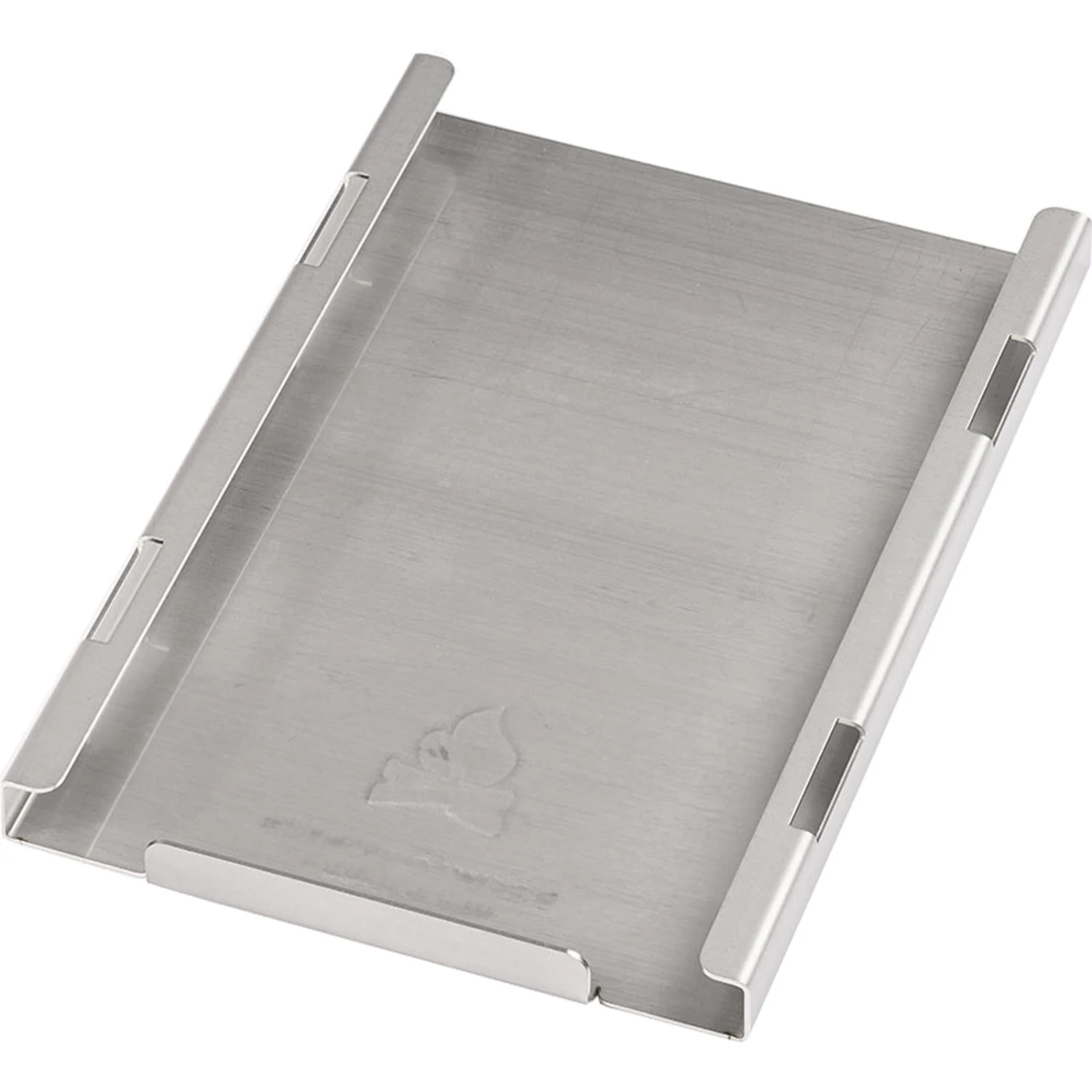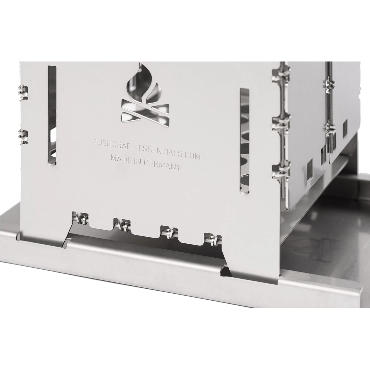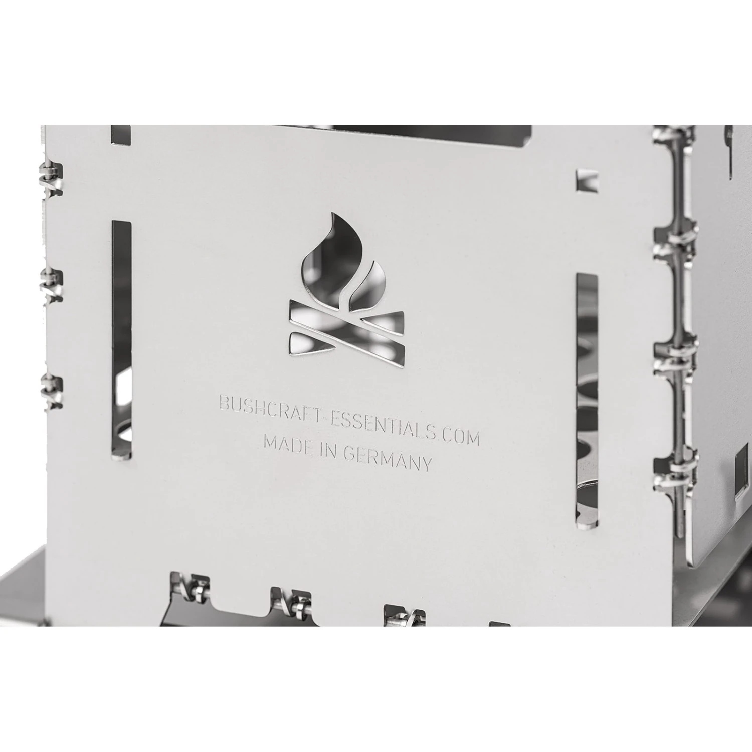 Ein ausgeklügeltes Zubehör für alle Outdoor-Fans ist der superleichte Multifunktions-Einschub aus Edelstahl. Die Bushbox XL Edelstahl von bushcraft essentials lässt sich kinderleicht in das Gehäuse einschieben und ist so sicher, sauber und platzsparend im Rucksack verstaut. Darüber hinaus bietet der Einschub eine Vielzahl weiterer Einsatzmöglichkeiten. Als feuerfeste, trockene Unterlage verwendet, lassen sich darauf Feathersticks schnitzen, Rinde schaben und vieles mehr, um ein Feuer zu entfachen. Das entzündete Material kann direkt vom Einschub in die aufgestellte Bushbox gegeben werden. Er dient als stabile Unterlage für die Bushbox XL Edelstahl, die sich mit nur einem Handgriff in die dafür vorgesehenen Aussparungen des Einschubs einrasten lässt. Praktisch auch auf unebenem Gelände wie Sand oder Schnee. Gleichzeitig schützt der Einschub den Untergrund vor heißer Glut und fängt etwaige Feuerrückstände auf. In der Outdoor-Küche lässt sich der Multifunktions-Einschub als Unterlage für die Zubereitung von Mahlzeiten oder als Deckel fürs Kochgeschirr verwenden. Der Multifunktions-Einschub Bushbox XL (Edelstahl) passt mit eingeschobener Bushbox XL Edelstahl auch in die Ledertasche Bushbox XL.