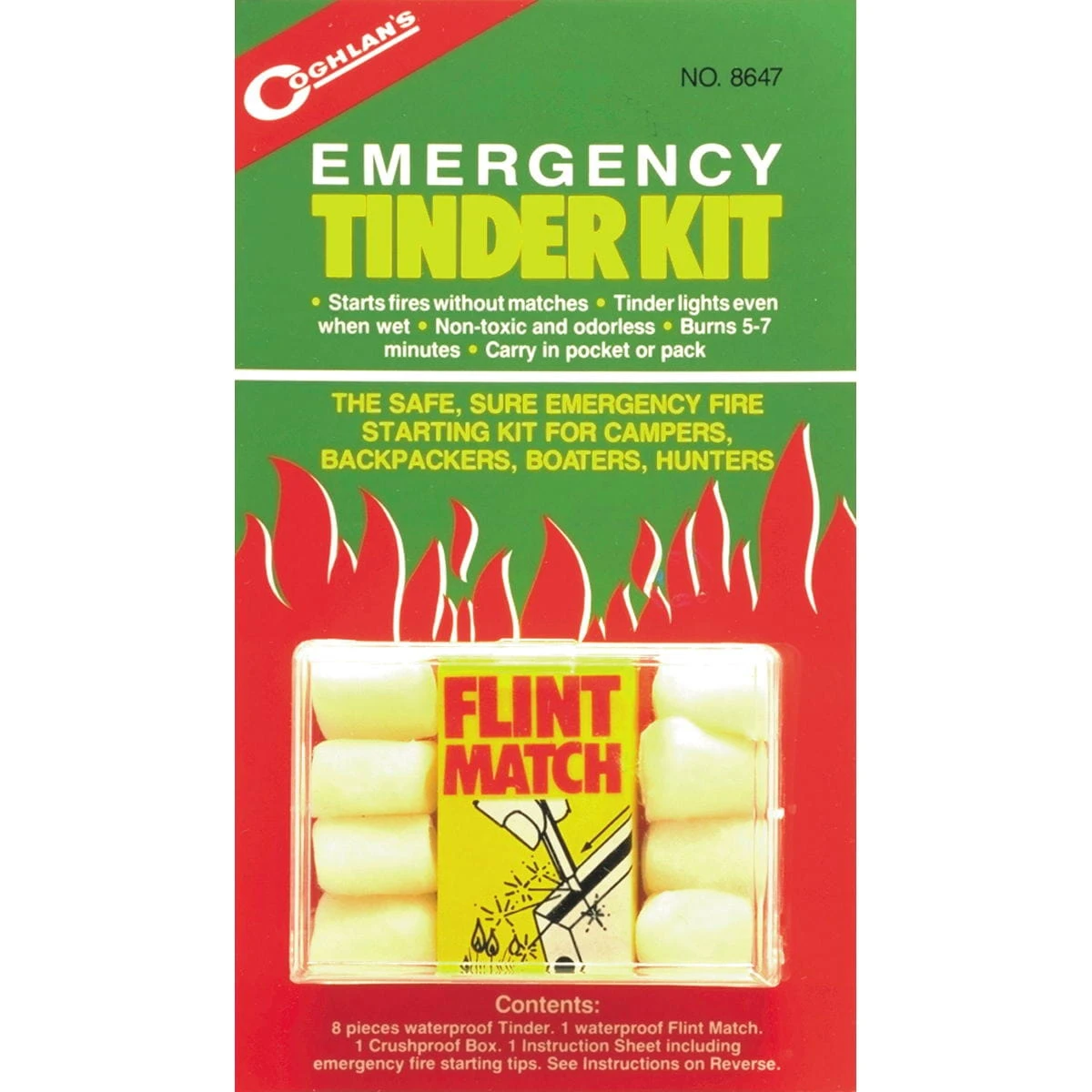 Notfallzünder wasserfest von Coghlans – mit Permanentfeuerzeug. Funktioniert auch bei Nässe ohne Zündhölzer. Brenndauer 5-7 Minuten pro Stück.