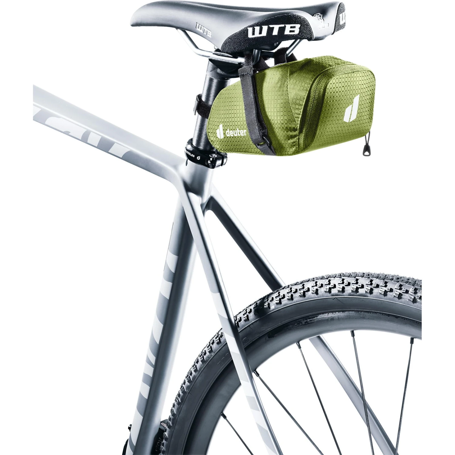 Bike Bag 0.8 von deuter ist eine Satteltasche fürs Fahrrad. Merkmale: immer in Griffweite hält die minimalistisch leichte Reißverschluss-Tasche Schlauch, Geld und Schlüssel; Klettverschluss, um die Tasche an den Sattelstreben zu fixieren; Blinklicht Halterung; reflektierende Elemente.