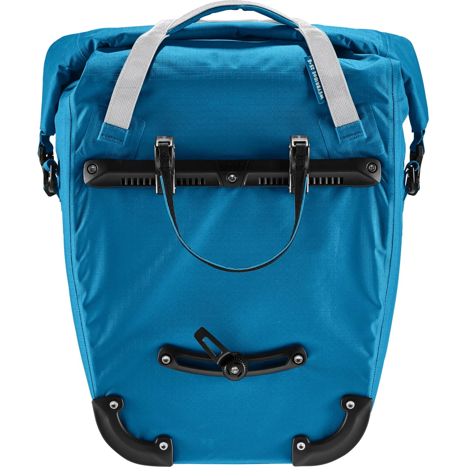 Die Weybridge 25+5 von deuter ist für sportliche Weltenbummler, die auf ihren Radausflügen nicht auf den Komfort einer geräumigen, wasserdichten Hinterradtasche verzichten wollen. Maximale Bewegungsfreiheit bietet die BagFix-Halterung. Zwei Führungsschienen und zwei Haken sorgen während den langen Fahrten für zuverlässigen Halt der Fahrradtasche. So liegt die Last zu 100% auf dem Hinterrad und nicht auf dem Rücken. Im Stand kann die Tasche mit nur einem Handgriff vom Gepäckträger abgenommen und als Schultertasche verwendet werden. Die wasserdichte Fahrradtasche bewahrt Ausrüstung, Reisegepäck oder Freizeitutensilien sicher vor dem Eindringen der Nässe bei Regen oder Spritzwasser. Dank des Rolltopverschlusses, der sich mittig oder seitlich fixieren lässt, kann das Volumen des leichten Raumwunders um zusätzliche 5 Liter Stauraum erweitert werden. Ob reine Aufbewahrungstasche mit Organisationseinheit am Hinterrad, größere Schultertasche zum Umhängen oder praktische Tragetasche. Dank abnehmbarem Schultergurt und verstellbarem Tragegriff-Verschluss mit Universalhalterung für Isomatte oder Jacke sind dem Einsatz der Weybridge 25+5 kaum Grenzen gesetzt.