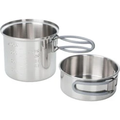 Wenn Packmaß eine Rolle spielt, ist dieses kompakte, stapelbare Kochset die ideale Wahl. Der Topf, bestehend aus hochwertigem Edelstahl, fasst ca. 985 ml und ist ausgestattet mit einer Volumenanzeige in Oz und Liter. Der Stand aus extrem leichtem Aluminium lässt sich platzsparend im Topf transportieren. Besonders praktisch: Die Deckelaufhängung sowie die platzsparenden Klappgriffe aus Edelstahl. Geliefert wird das Set im praktischen Netzbeutel.