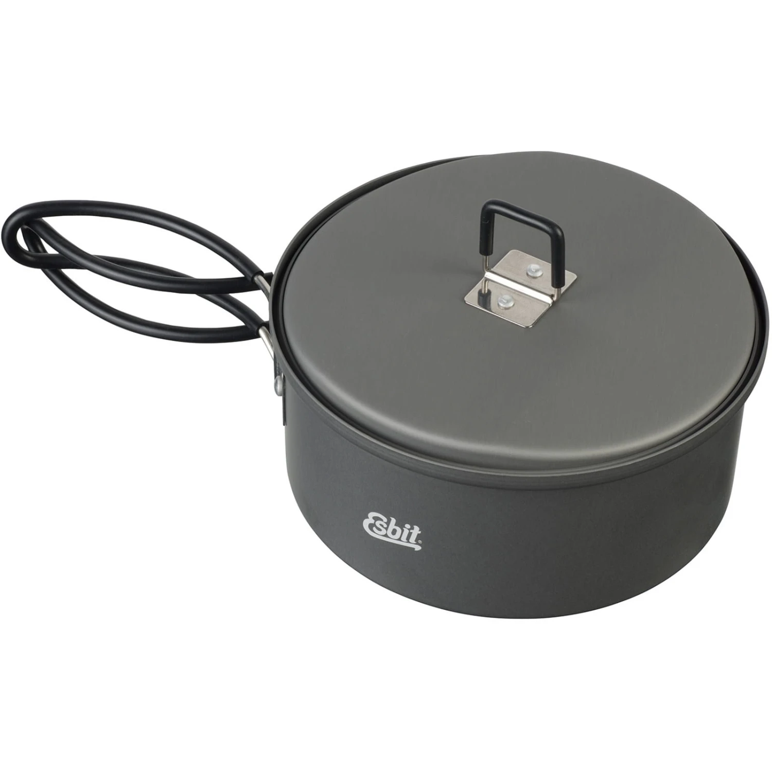 Das Esbit 1000 ml Trockenbrennstoff-Kochset besteht aus extrem leichtem, hartanodisiertem Aluminium und ist ideal für unterwegs. Das Gewicht beträgt nur 346 g. Das Kochset wird mit zwei 14 g oder einer 27 g Trockenbrennstofftablette befeuert. Der Deckel kann während des Kochens praktisch am Rand des Topfes aufgehängt werden. Für den Transport wird der Ständer im Topf verstaut, so dass das Kochset ein besonders kleines Packmaß hat.