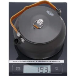 Schöne Edelstahltasse Bottle Cup in hoher Ausführung von GSI, welche so designed wurde, dass sie platzsparend über z.B. eine 1 Liter Nalgene Trinkflasche mit Ø 9,25 cm passt. Mit genug Kapazität, um auch als Minitopf zu fungieren. Dank der faltbaren Griffe sehr gut zu verstauen.
