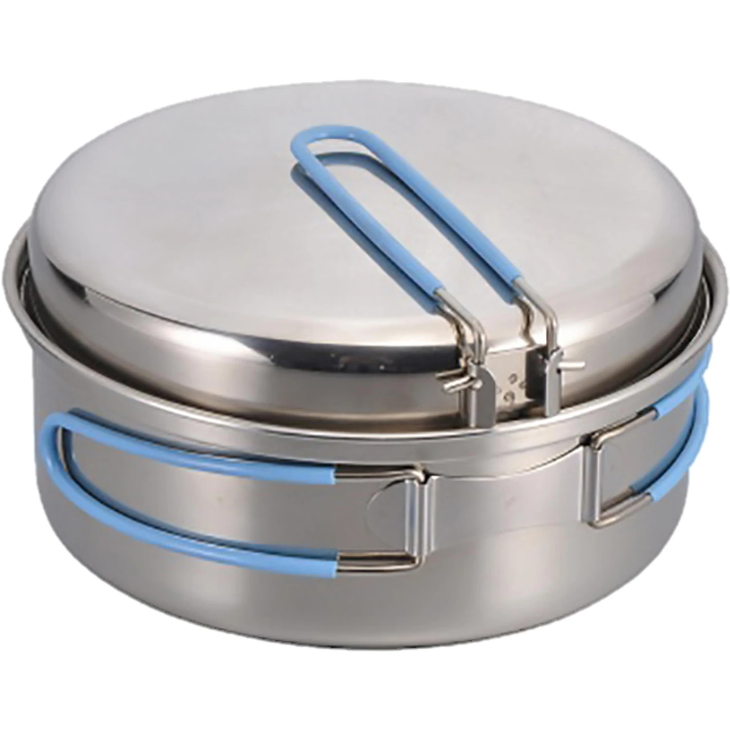 Das Companion von Origin Outdoors ist ein klassisches Kochset aus hochwertigem Edelstahl für 2 Personen. Das Set umfasst einen Kochtopf, eine Pfanne und zwei tiefe Teller. Sollte die Pfanne nicht gebraucht werden, kann sie auch als Deckel für den Topf verwendet werden, um das Kochen zu beschleunigen. Die Teller kann man bequem ineinander stapeln und für den Transport im Topf verstauen. Des Weiteren verfügen der Topf und die Pfanne über gummierte Klappgriffe für ein kompaktes und platzsparendes verstauen im Gepäck.