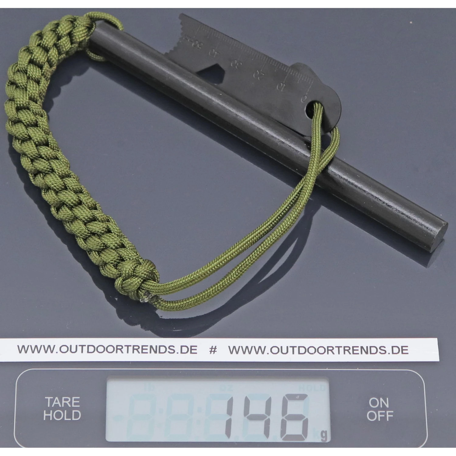 Mit bis zu 22.000 Zündungen gehört der Zündstahl Goliath von Origin Outdoors zu den langlebigsten seiner Art. Die Größe macht die Handhabung vor allem mit dem Messerrücken sehr einfach und effektiv. Ausgestattet mit ca. 3 m Paracord ist der Zündstahl unerlässlich für jede professionelle Survivalausrüstung.