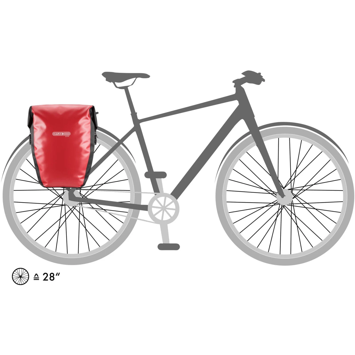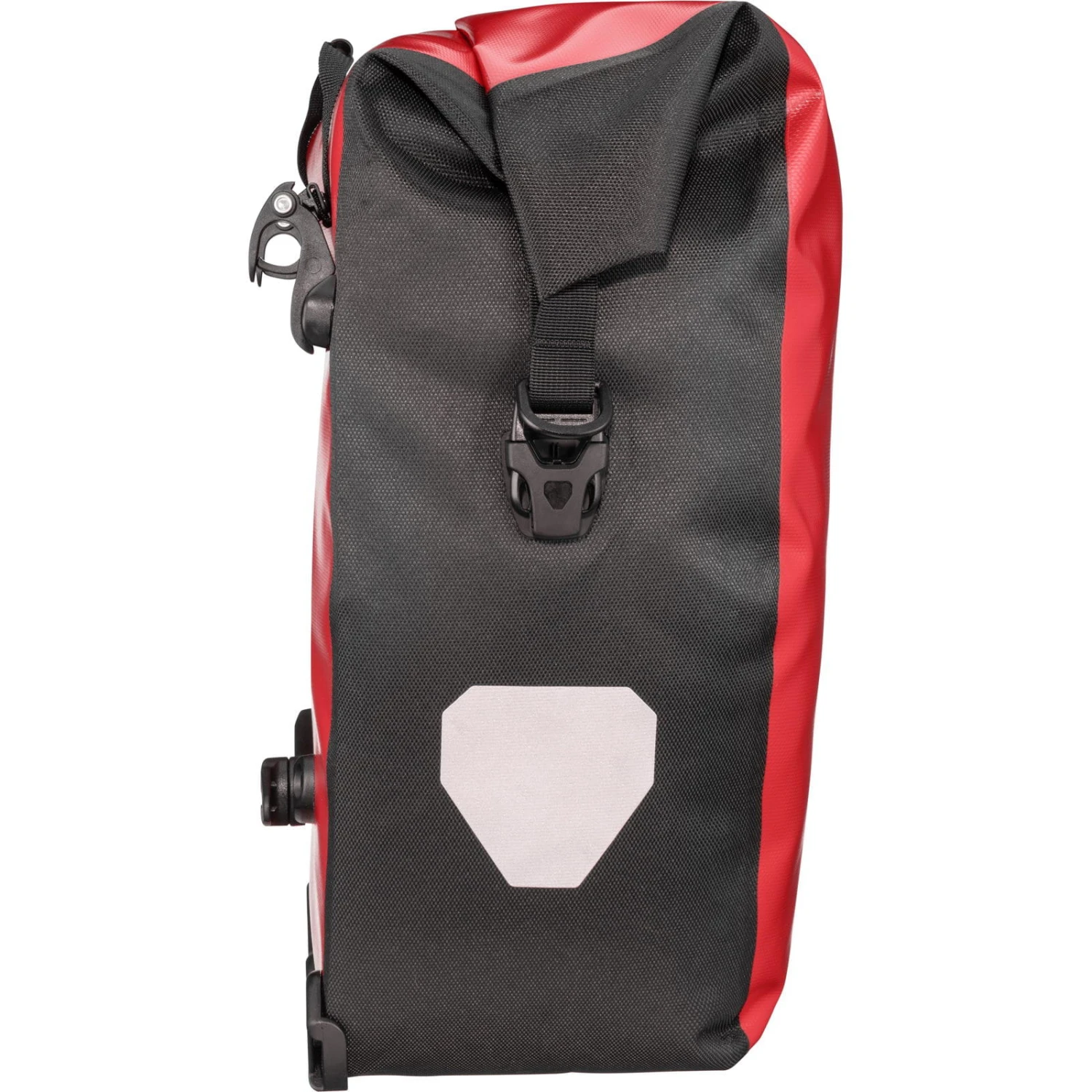 Der Back-Roller City als preisgünstiges Einstiegsmodell ist eine schnörkellose, geräumige Packtasche für den hinteren Gepäckträger. Die symmetrische, beidseitig angeschrägte Form sorgt für die nötige Beinfreiheit bei diesem ORTLIEB-Klassiker. Die Einzeltaschen können links oder rechts am Fahrrad befestigt werden Die halb-elliptische Hakenschiene auf der unteren Taschenrückseite dient weiterer Fixierung und verhindert das Abschlagen der Tasche. Dank drehbarem Arretierungshaken ist sie in 15° Schritten an praktisch alle Gepäckträger anpassbar. Zwei großflächige und leuchtstarke Reflektoren sorgen für zusätzliche Sicherheit in Dämmerung und Dunkelheit.