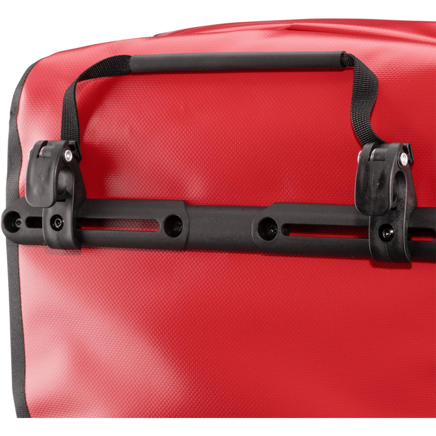 Ausstattung: ORTLIEB-QuickLock-1 bis 16 mm Gepäckträgerrohr, Gerade, untere Hakenschiene, PVC beschichtetes Polyestergewebe, großflächige Refelktoren