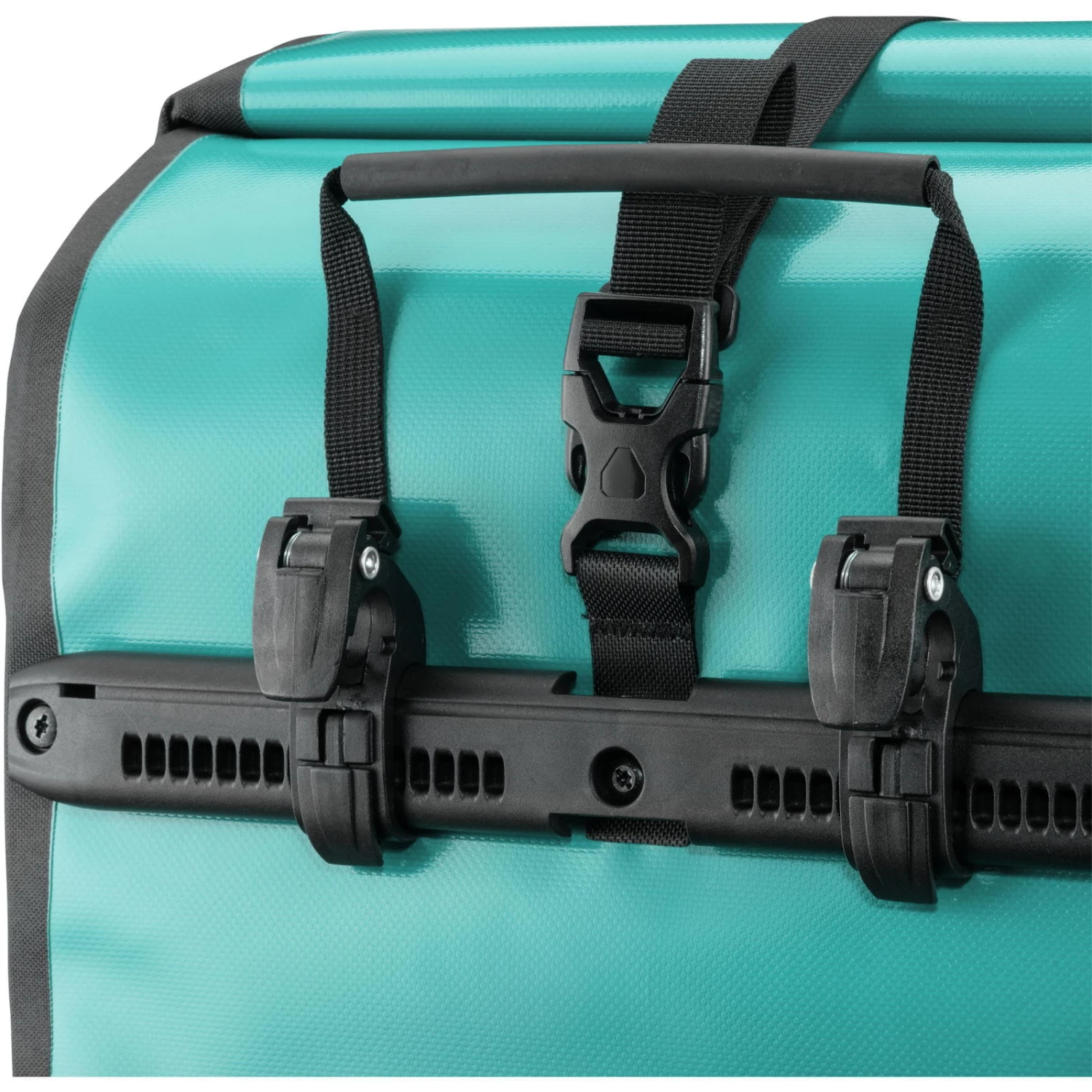 Das praktische Quick-Lock2.1 Halterungssystem mit selbstschließenden Haken hilft dabei, die Taschen schnell und einfach an fast allen Gepäckträgern einzuhängen. Das System ist ohne Werkzeug verstellbar, die 16 mm Haken können mit beiliegenden Einsätzen verkleinert werden (8, 10 und 12 mm). Die untere Hakenschiene dient zur zusätzlichen Fixierung und verfügt über weichere Auflagenflächen, was besonders schonend für den Gepäckträger ist. Dank drehbarem QL2.1-Arretierungshaken ist das System an praktisch jeden Gepäckträger anpassbar.