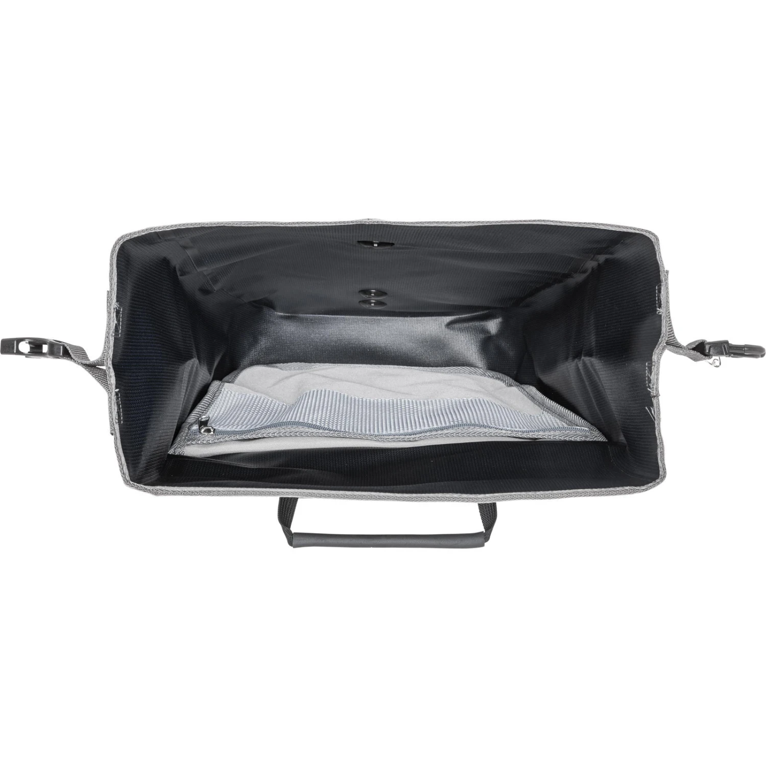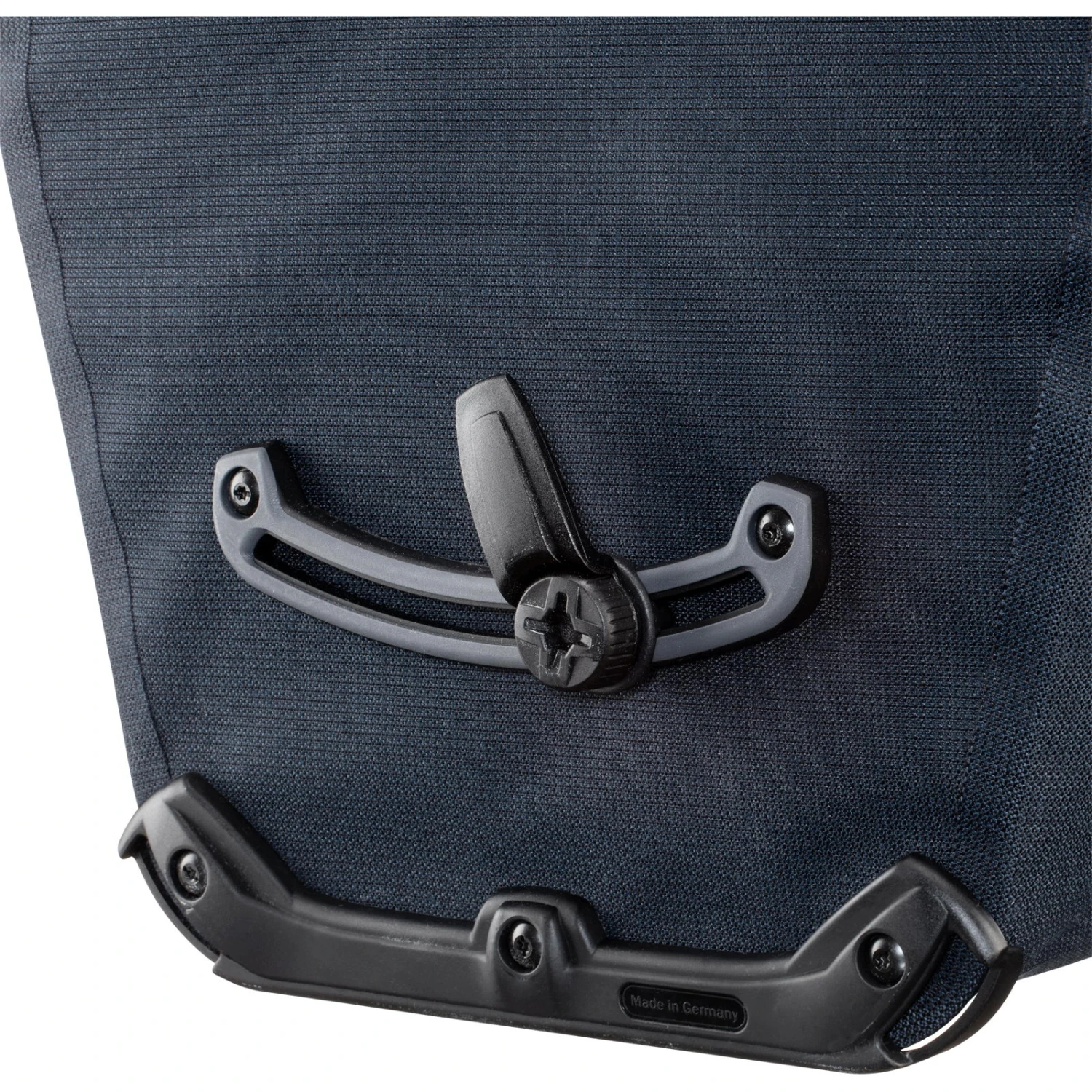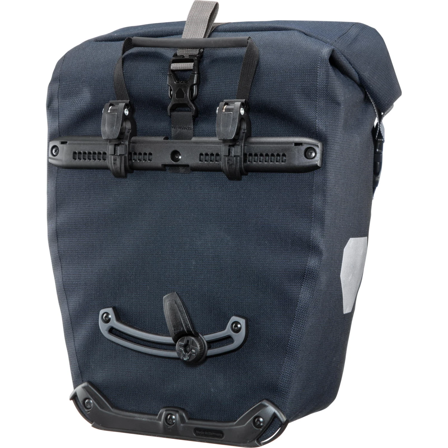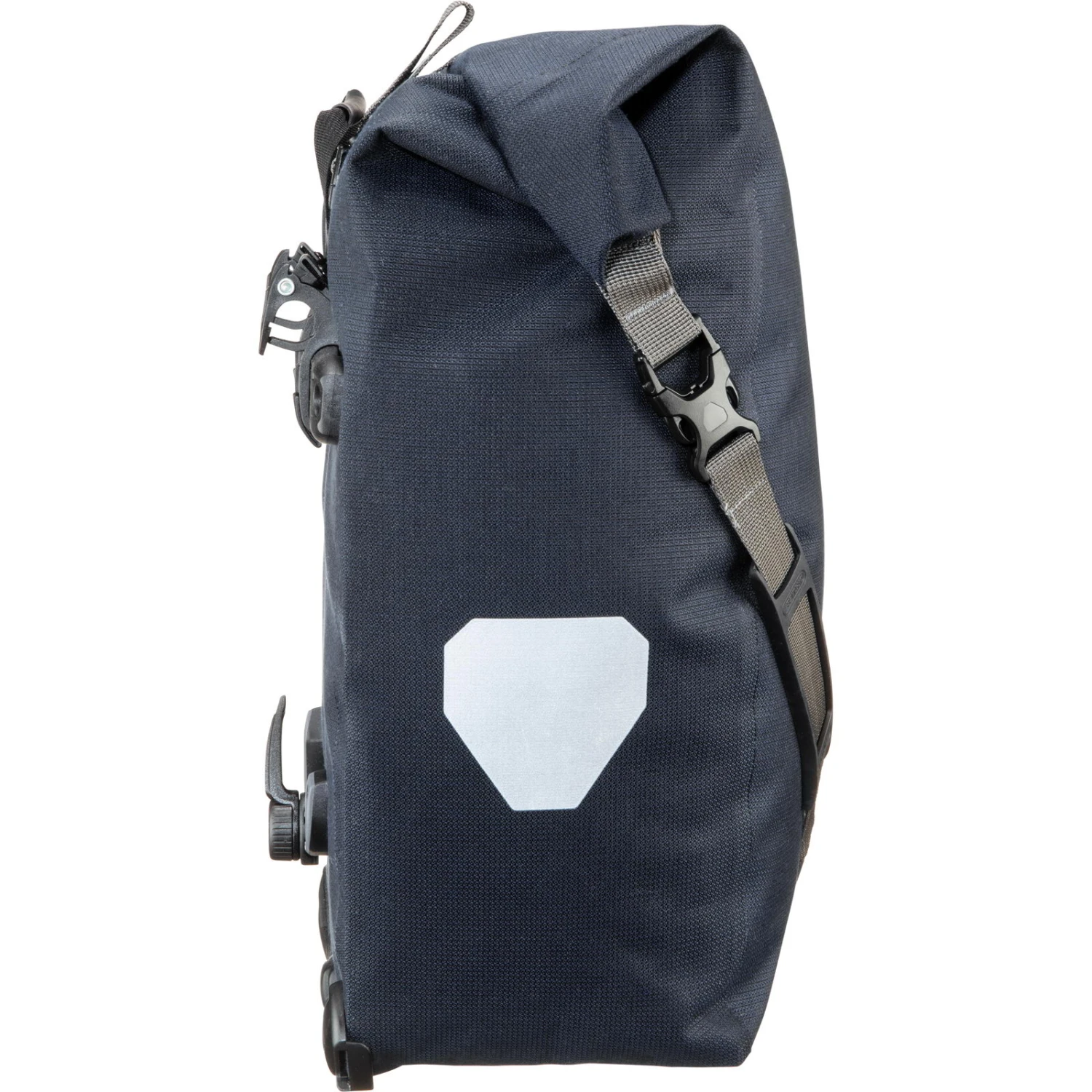 Der multifunktionale Back-Roller Urban von ORTLIEB ist ideal für alle, die eine geräumige, wasserdichte Tasche für den Weg zu Arbeit, Uni oder Schule benötigen. Passend zum Casual- oder Business-Outfit, ist die Tasche aus einem Cordura-Baumwolle-Mix im textilen Look gefertigt. Dank der PU-Beschichtung auf der Innenseite ist sie trotzdem 100% wasserdicht. Ein schnelles und unkompliziertes Befestigen am Gepäckträger gewährleistet das praktische Quick-Lock2.1 Halterungssystem. Beim Einhängen arretieren die Befestigungshaken selbsttätig. Zum Abnehmen, einfach am schmalen Tragegurt anheben. Damit die Tasche an jeden Gepäckträger passt, können die 16mm Grundhaken mit Einsätzen verkleinert werden (8, 10 und 12mm). Optional erhältlich ist zudem ein 20mm Haken. Die Hakenschiene auf der unteren Taschenrückseite, die zur zusätzlichen Fixierung dient, besteht aus einem Zweikomponenten-Kunststoff in einer Hart-Weich Kombination. Dabei sind die Auflagenflächen weicher – schonend für den Gepäckträger. Dank drehbarem QL2.1- Arretierungshaken ist sie an praktisch alle Gepäckträger anpassbar. Eine fest montierte Innentasche, bestehend aus Hauptfach und Netztasche mit Reißverschluss sorgt für Ordnung und Übersicht. Mit dem Schultergurt lässt sich der Back-Roller Urban bequem als Umhängetasche tragen. Zwei großflächige und leuchtstarke Reflektoren sorgen für besseres Gesehen werden im Straßenverkehr.