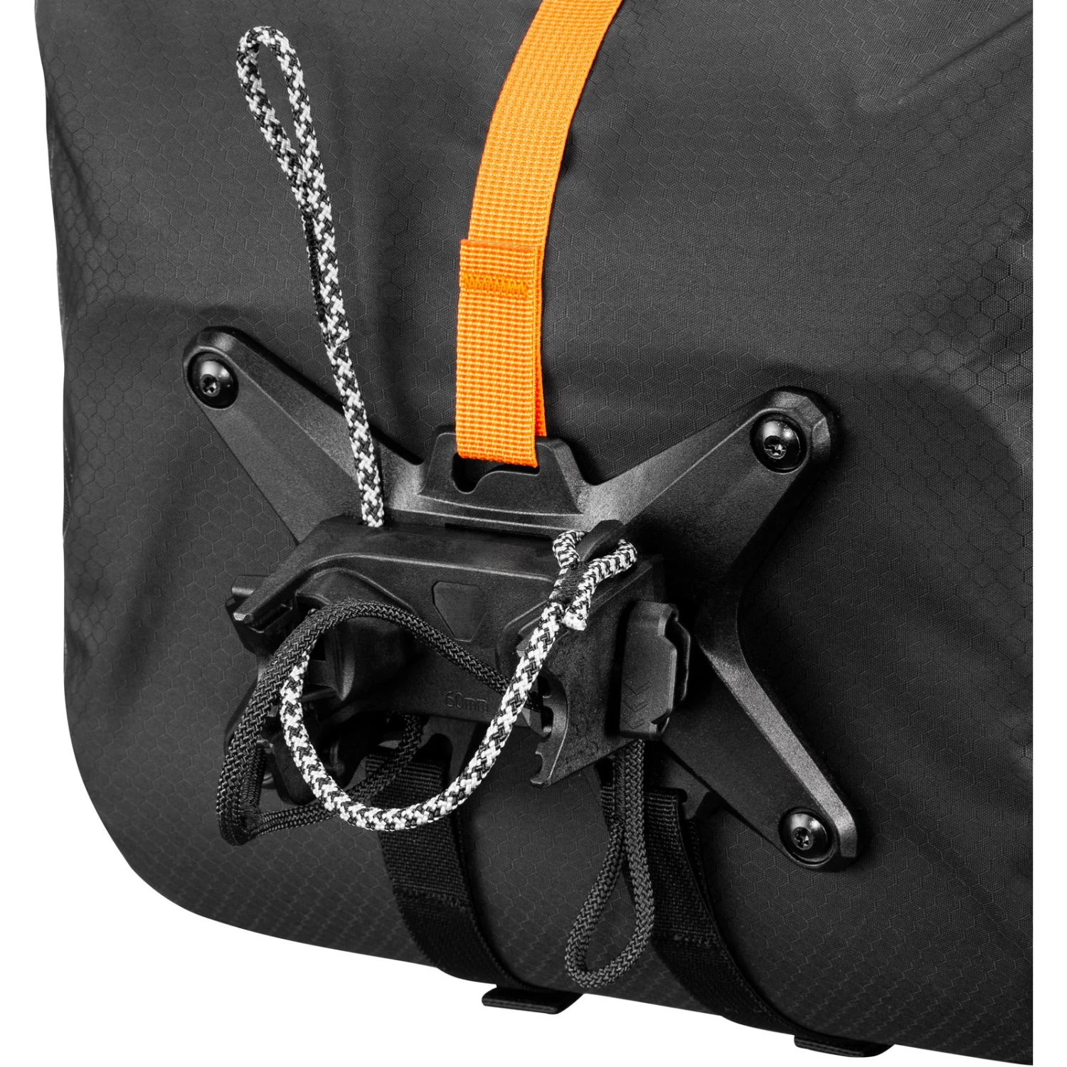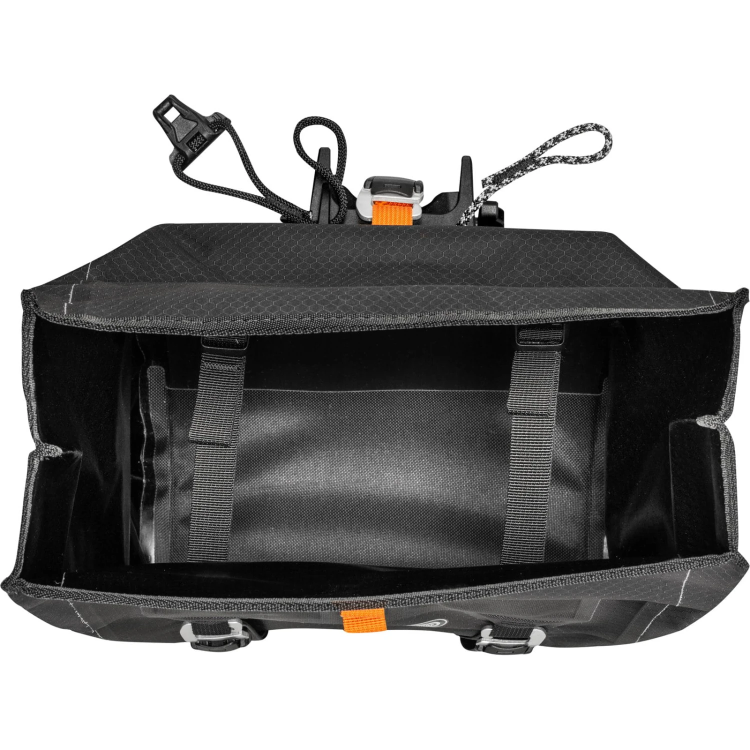 Ein neues Befestigungssystem, das Bar-Lock, ermöglicht die Anbringung und die Demontage der wasserdichten Handlebar-Pack QR (Quick Release) von ORTLIEB in kürzester Zeit. Die Mitnahme ist dadurch beispielsweise beim Erreichen des Ziels innerhalb von Sekunden problemlos möglich. Dank der Bar-Lock Seilbefestigung sitzt diese Bikepackingtasche zudem absolut stabil am Lenker, auch bei rauerem Gelände. Innenkompressionen und die durch den Rollverschluss variable Höhe unterstützen das sichere Verstauen von Equipment. Zwei weitere Haken mit CamLock-Verschluss auf der Vorderseite schaffen zudem weitere Möglichkeiten zur Komprimierung. Die Anbringung der Bikepacking-Tasche erfolgt ausschließlich am Lenker bzw. dem Vorbau. Das elf Liter fassende und nur 540 Gramm leichte Handlebar-Pack QR wird von oben beladen und ist durch die schmale Bauweise von 32 Zentimetern auch ideal für Gravel- und Rennlenker geeignet. Seitliche Außentaschen gestatten das Verstauen von Kleinteilen oder Snacks auf welche auch während der Fahrt zugegriffen werden soll. Die PVC-freie Tasche aus abriebfestem Nylongewebe ist natürlich nachhaltig hergestellt in Deutschland. Die maximale Zuladung beträgt fünf Kilogramm. Das optionale Zubehör Handlebar-Pack QR Inner Pocket hilft Ordnung zu bewahren und schafft Raum für die Unterbringung von wichtigen Utensilien wie Bargeld, Karten oder dem Handy.