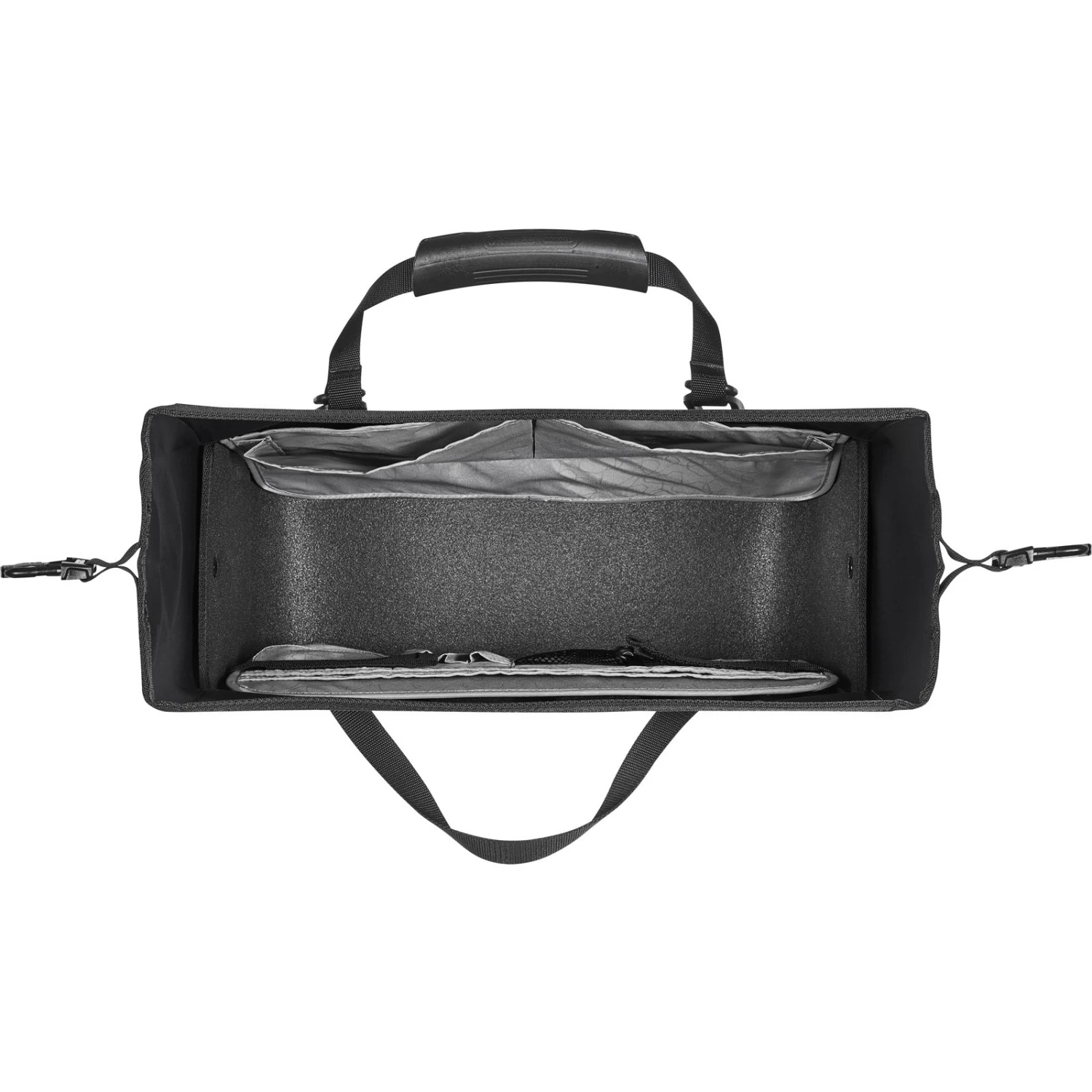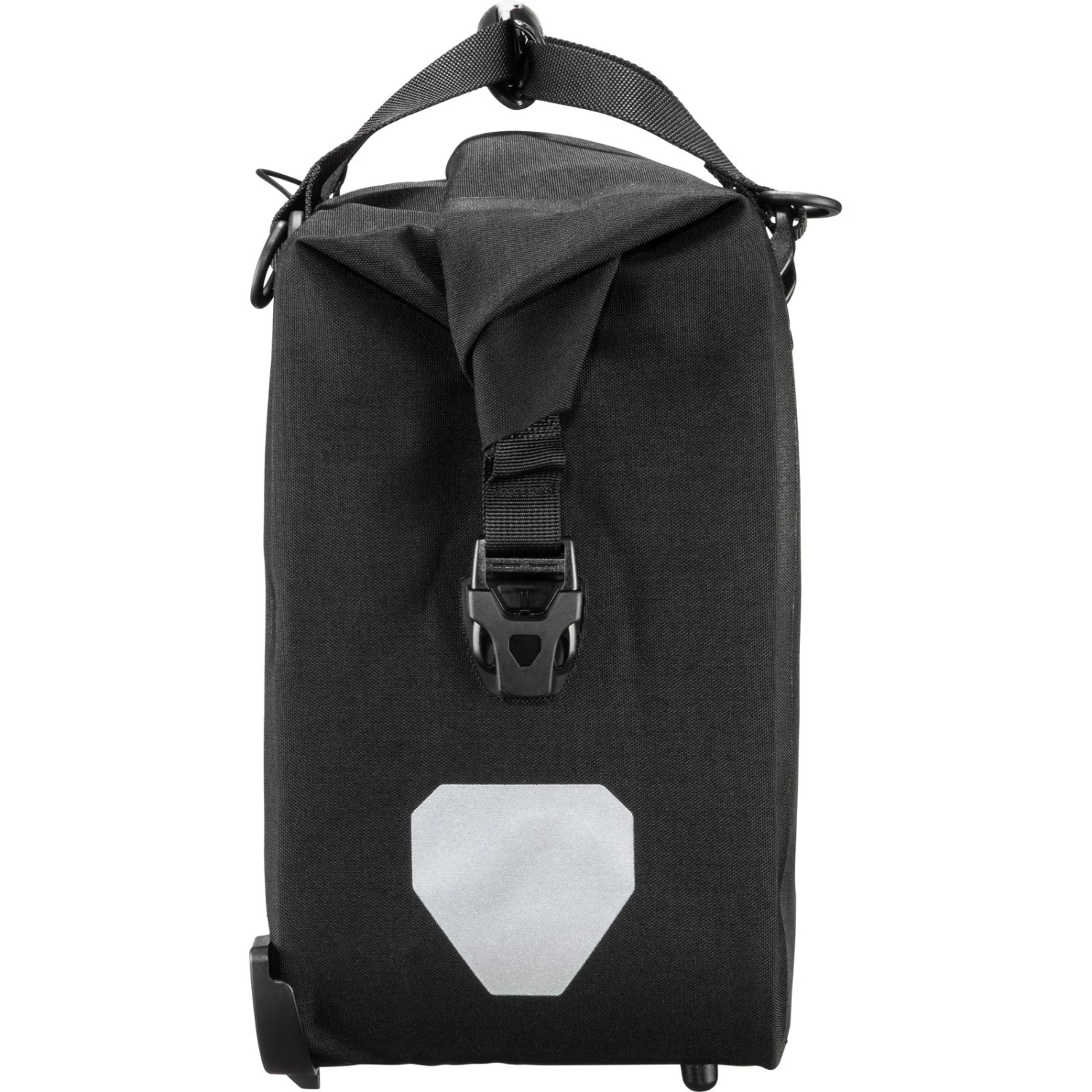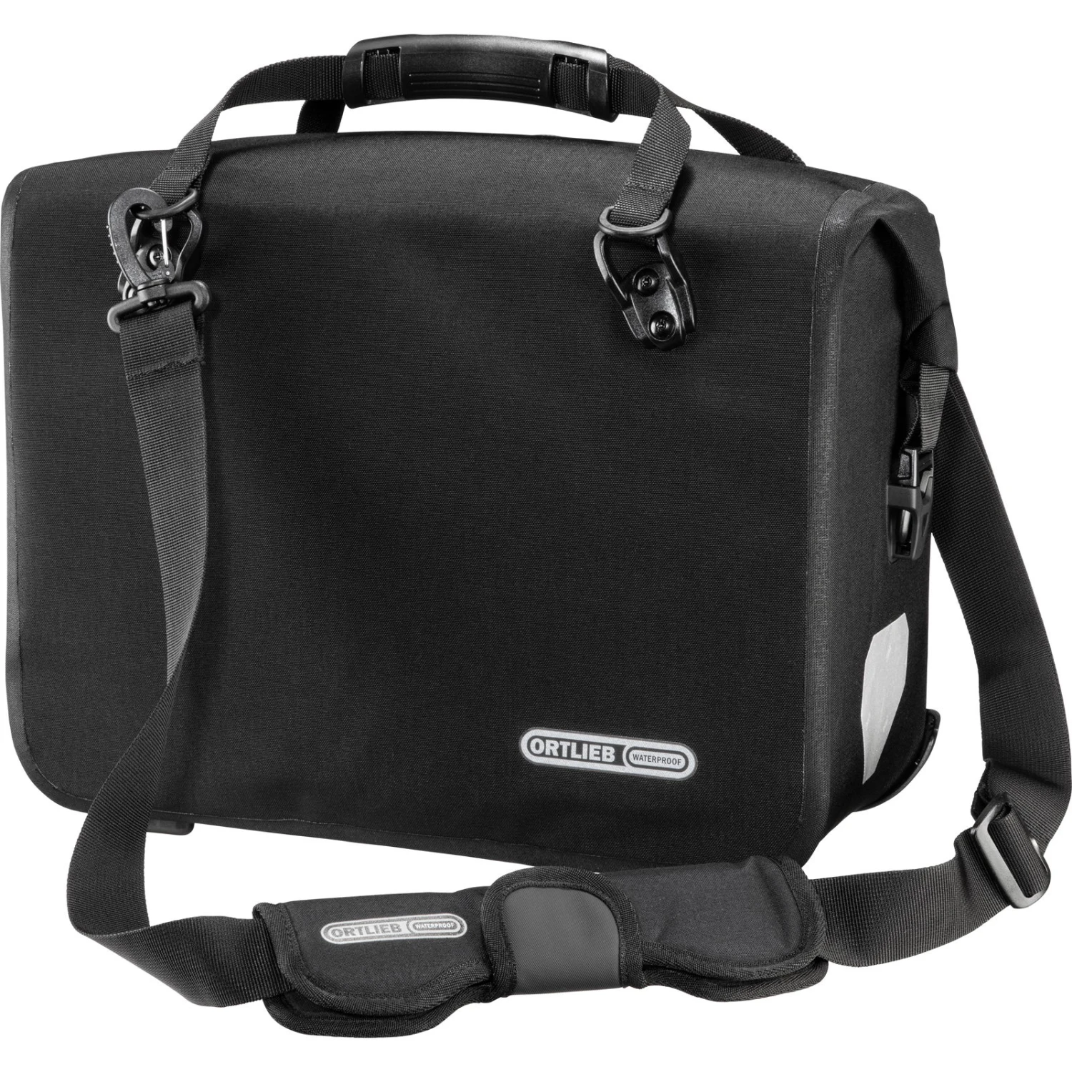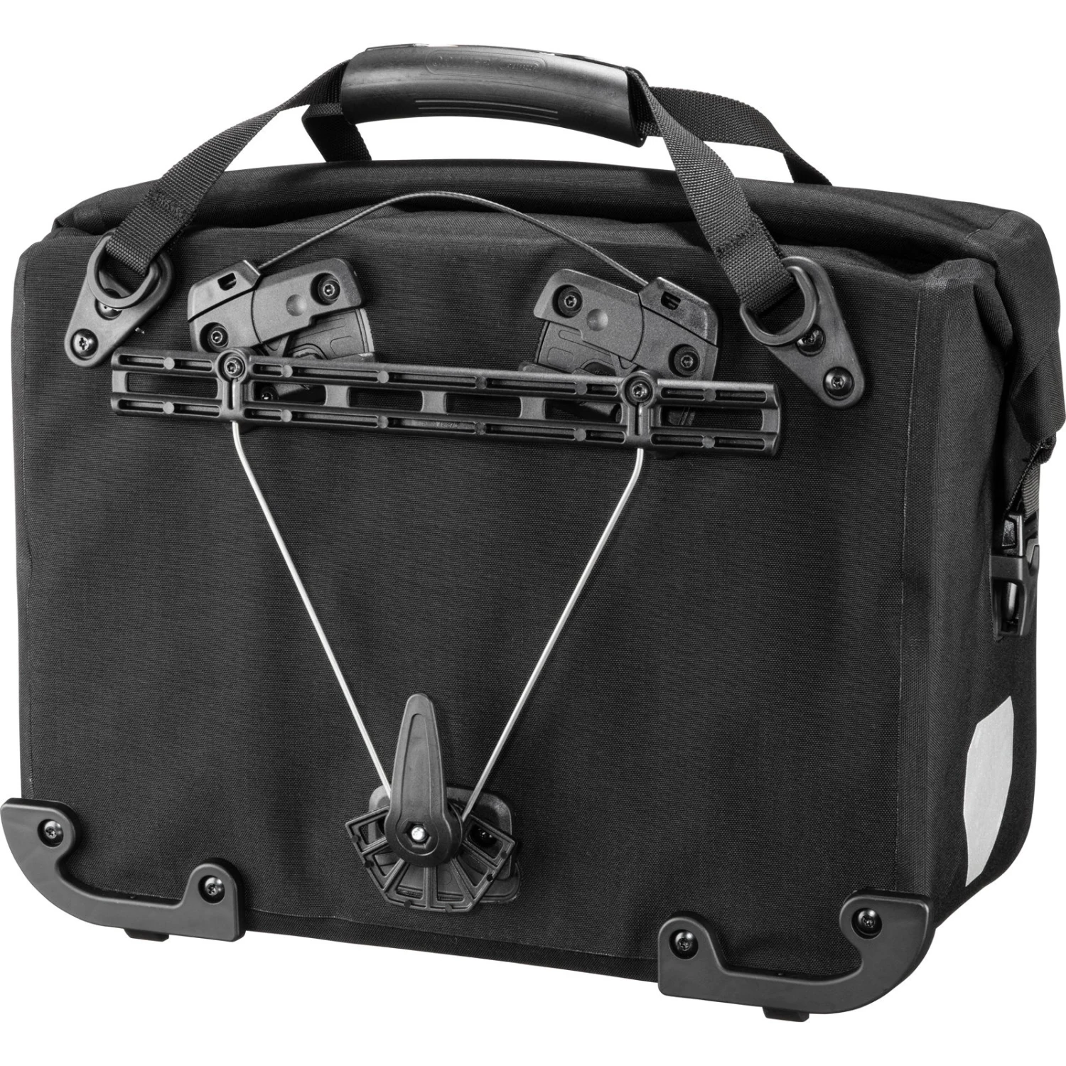 Das Office-Bag QL3.1 von ORTLIEB in der Größe aus dem PS36C Material (PVC-free) ist eine geräumige Fahrradaktentasche, jedoch mit dem Bonus einer praktischen Gepäckträgerbefestigung, dem neuen Quick-Lock3.1 System. Der wasser- und staubdichte Rollverschluss gewährleistet sicheren Transport von Dokumenten und Laptop zur Arbeit oder Uni, egal bei welchem Wetter! Zwei unterteilte Innentaschen sorgen für Ordnung und Übersicht. Mit einem Volumen von 21 Litern schluckt die Tasche problemlos einen großen Ordner und Laptop, sowie die für den Schul- oder Berufsalltag notwendigen Kleinigkeiten wie Taschenrechner, Terminplaner, Handy, Stifte, Pausenbrot, Thermoskanne u.a. Ein noch komfortableres und schnelleres Einhängen der Radtasche ermöglicht ab sofort das optimierte QL3.1-Halterungssystem. Die Tasche wird lediglich am unteren Aufnahmepunkt aufgesetzt, an den Gepäckträger herangeführt und mit einer seitlichen Bewegung von links oder rechts eingeschwenkt und sicher an den beiden oberen Aufnahmen arretiert. Genauso schnell und leicht funktioniert das Abnehmen: einfach Tasche am Griff anheben und gleichzeitig entweder nach links oder rechts schwenken, fertig! Zwei großflächige und leuchtstarke Reflektoren sorgen für zusätzliche Sicherheit in Dämmerung und Dunkelheit. Abstellfüße und Kantenschutz an den Ecken schützen den Taschenboden.