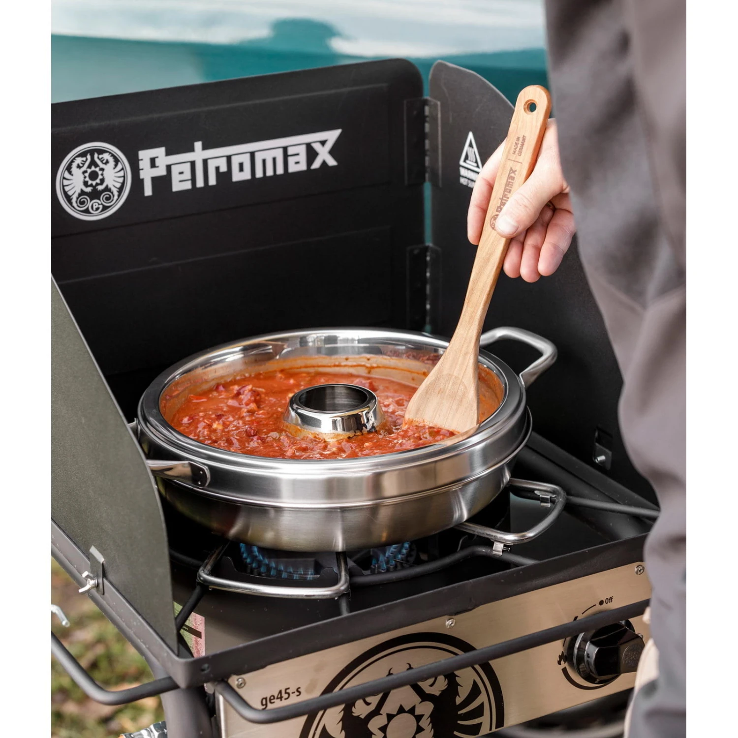 Der Camping Backofen campo von Petromax ist ein hochwertiger Edelstahl-Backofen mit gleichmäßiger Hitzeverteilung für alle Outdoor-Aktivitäten. Gerichte frisch aus dem Ofen: überbackene Aufläufe, knusprige Brötchen und saftige Kuchen. Der Mini-Backofen ist für den Herd, Gastisch, Campingkocher oder die direkte Verwendung über der Glut in Kombination mit dem Pfannenknecht Untersetzer (nicht im Lieferumfang enthalten) geeignet. Die dreiteilige Edelstahl-Form ermöglicht durch die durchdachte Konstruktion sowohl Ober- als auch Unterhitze. Die Hitze der Wärmequelle wird optimal an die einzelnen Bestandteile des Camping Backofens weitergegeben. Über den Unterboden steigt die erhitzte Luft durch die Öffnung der Ringform in der Mitte auf und erzeugt so ein gleichmäßiges Back- und Koch-Ergebnis. Für den sicheren Verschluss und das Entstehen von Ober- und Unterhitze sorgt der Deckel. Unter dem aufgesetzten Deckel kann sich die Hitze optimal verteilen und Ventilationsöffnungen und die äußere Beschichtung ermöglichen optimale Backergebnisse. Dank Edelstahlknauf kann man sicher nachsehen, ob das Gericht schon verköstigt werden kann. Die beiden Henkel ermöglichen eine angenehme, sichere Handhabung und ein einfaches Servieren. Der platzsparende Mini-Backofen fürs Camping ermöglicht vielseitige Ofengerichte überall dort, wo kein Backofen vorhanden ist. Unterwegs mit dem Camper oder Van gelingen Gerichte, die begeistern. Das campo-bake Backblech (Art.Nr.: PEF.CAMP.OVEN.BAKE – muss separat bestellt werden) erweitert die Möglichkeiten des Mini-Backofens und ist die unverzichtbare Ergänzung, um knusprige Frühstücksbrötchen, Flammkuchen und Pizzen zuzubereiten. Liegt das runde Edelstahl-Blech auf der Ringform, können zudem zwei Gerichte zeitgleich zubereitet werden. Auf dem Blech überbacken knusprige Nachos, während unten bereits das feurige Chili köchelt. Die seitliche Luftführung des Blechs sorgt für Luftzirkulation und ermöglicht das Backen von knuspriger Pizza oder Flammkuchen, wenn das Blech direkt auf der Basis liegt.