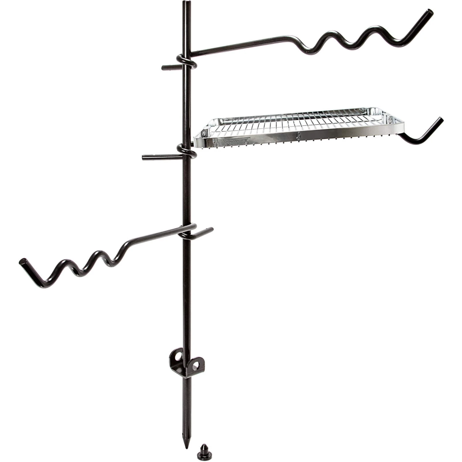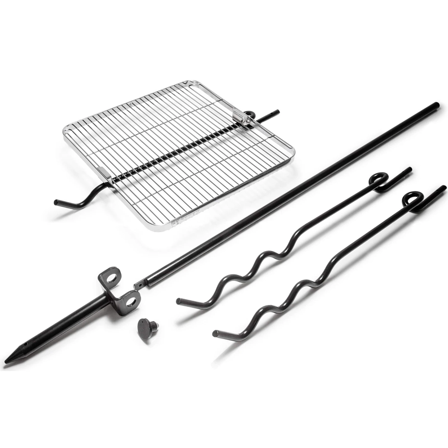 Mit dem Feueranker von Petromax macht man aus nahezu jedem Lagerfeuer spontan eine praktische und vielseitige Kochstelle inklusive Grillfunktion. Der Feueranker aus beschichtetem Stahl lässt sich einfach und schnell neben der Feuerstelle im Boden verankern. Egal ob man ihn über offenem Feuer nutzen möchte, über dem Atago oder über der Grill- und Feuerschale, er hilft zuverlässig beim Kochen im Feuertopf (bis einschließlich ft6), beim Zubereiten von heißem Wasser im Teekessel oder beim Grillen von Gemüsespießen, Würstchen und Co. auf dem Grillrost. Dein Feueranker verfügt über eine Hauptstange, die im Boden fixiert wird, und drei Arme, die man individuell auf den Feueranker aufstecken und in Höhe sowie Ausrichtung variieren kann. Zwei der Arme haben Einkerbungen an den Enden, an denen man seine Kochutensilien anhängen kann. Der dritte Arm verfügt über einen Grillrost sowie eine zusätzliche Einkerbung für Grillhandschuhe oder die Grill- und Kohlenzange. Auf dem großzügigen Grillrost mit erhöhten Rand finden Würstchen, Gemüsespieße und Co. sicher Platz. Vor der Verwendung des Feuerankers muss man allerdings auf die jeweilige Bodenbeschaffenheit an der Feuerstelle achten. Sandiger Boden eignet sich zum Beispiel weniger gut, da hier der Feueranker wenig Halt finden wird. Achten Sie beim Kochen mit schweren Feuertöpfen auf einen angemessenen Gewichtsausgleich, um so einen sicheren Stand deines Feuerankers zu gewährleisten. Alternativ bietet sich die Feuerbrücke an.