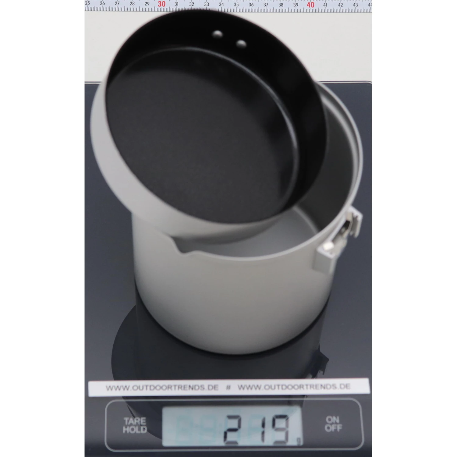 Im Set mit dem Essential Trek Pot 1.0 L bekommt man ein preisgünstigen, praktischen, leicht verstaubaren Topf mit einem Deckel welcher als Pfanne benutzt werden kann. Zusammen mit dem Essential Trail Stove wird daraus das Primus Essential Trail Kit 1.0 L. Der 1.0 L Topf aus Aluminium hat einen etwas dickeren Boden. Dadurch verteilt sich die Temperatur gleichmäßg im ganzen Topf ohne anzubrennen. Das spiralförmige Muster im Topfboden begünstigt die Wärmeübertragung zusätzlich. Der Topfdeckel, welcher auch als Pfanne genutzt werden kann, besteht ebenfalls aus Aluminium. Die Keramik-Antihaft-Beschichtung innen, sorgt für ein unkompliziertes Kocherlebnis und erleichtert das Reinigen. Der Essential Trek Pot 1.0 L ist mit zwei Griffen ausgestattet. Einer der Griffe bietet festen Halt wenn man den Topf im Einsatz hat und sichert den Deckel/die Pfanne, wenn das Set verstaut wird. Der andere Griff wird an der Pfanne befestigt, damit man Pfanne und Topf gleichzeitig nutzen kannt. Er lässt sich nach dem Kochen ganz einfach im Topf verstauen. Abgerundet wird das Set mit einem praktischen, leicht gepolsterten Transportsack.