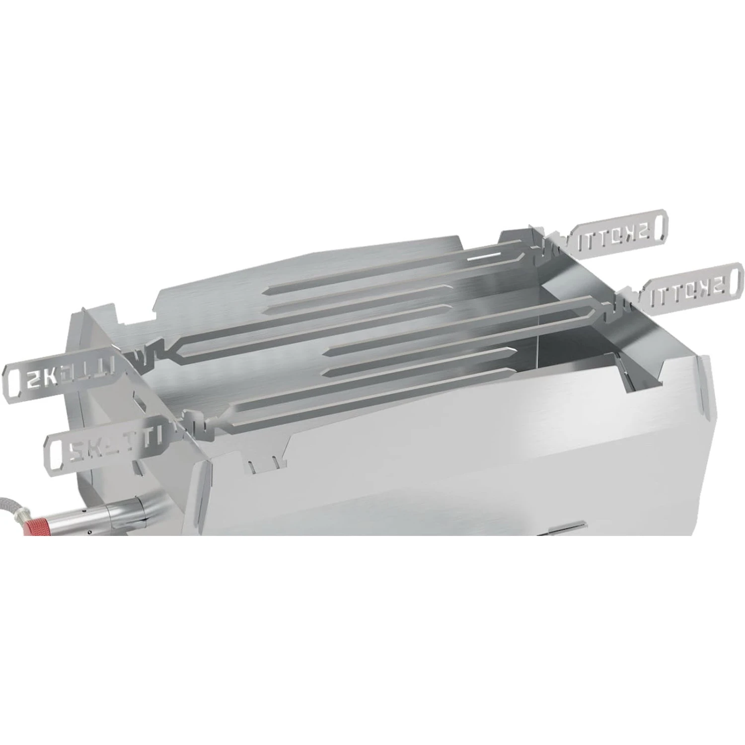 Die PIKES von SKOTTI lassen sich einfach an den SKOTTI stecken und easy drehen, mit diesen Grillspießen lassen sich jede Menge neue Grill-Möglichkeiten entdecken. Die Pikes sind wie gewohnt in höchster SKOTTI-Edelstahl-Qualität und ultra praktisch in der Anwendung. Durch die einzigartige Doppelspitze hält alles bombensicher, wie man es auch dreht und wendet. Die Spieße lassen sich sowohl quer als auch längs im SKOTTI einsetzen. Im Lieferumfang sind 6 Stück.